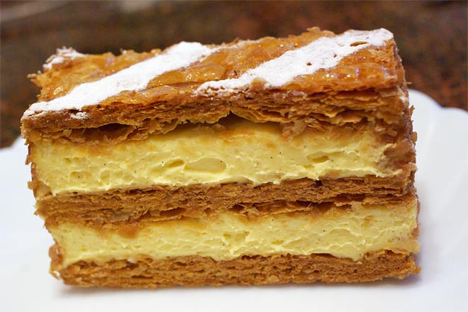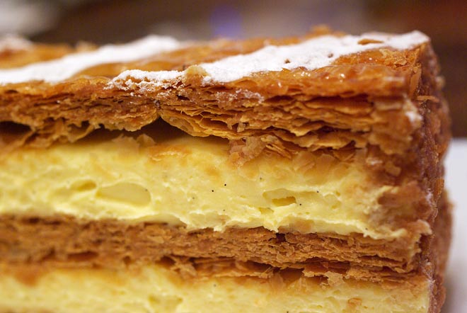 こちらはご存知ミルフィーユ。 さすがに出来立てというわけには行きません。