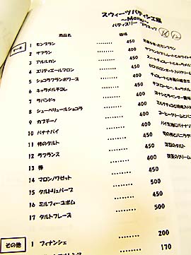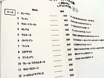ケーキショップメニュー 2003