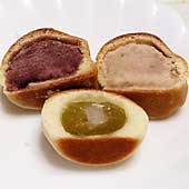 白あんと普通のあんの二種。 それ程特徴のあるものではない。 皮がぱさぱさ、ぼそぼそ・・・ぐらいかな? 甘さはやはり強め。