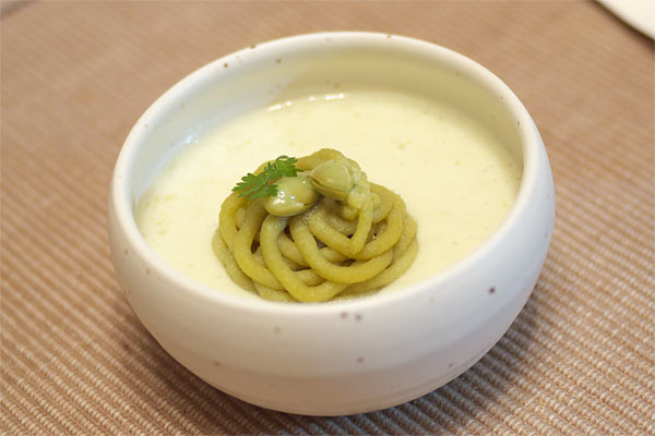 下の柔らかい部分はあっさり。 上のずんだの味わいはしっかりと。 2つのバランスがあわさって。