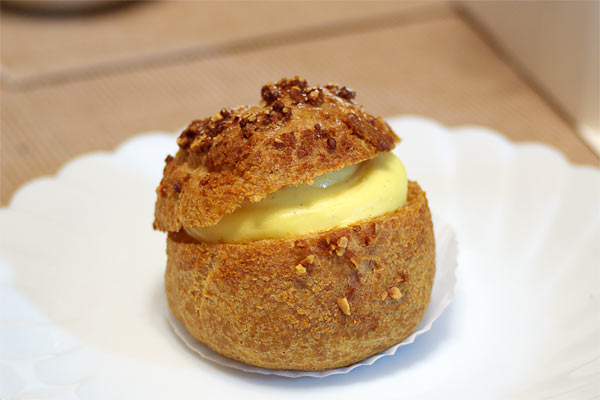 やや香ばしさのある、色の濃いめのシューとカスタードのバランスがよい。好みの濃さ。