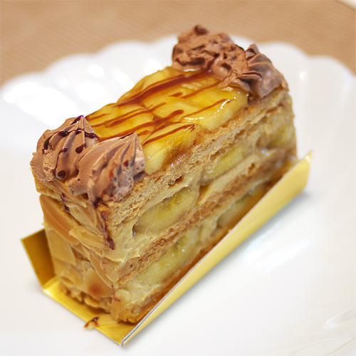 バナナのほのかな酸味とチョコレートがうっすらかかっており、そのバランスは定番のもの。