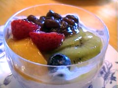 ![]() ゴマのプリン(ブランマンジェ?)なのだろうか、は なかなか好みのタイプではある。 しかし・・・・上にのっているのはかなりいただけない。 これも値段を知ったら驚くのだろうか? 高島屋で買ったらしいのであるが、一言言ってくれれば、 他のケーキ屋をお願いしたのに。。 |