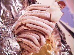 買って冷蔵庫に入れておいたのは良かったのだが、 そのまま寝てしまった。 しかも、中にはドライアイスという今時 珍しい冷やし方。 そのためであろうか? すっかりシューは固まってしまい、味気ないことこの上ない。 モンブランもマロンクリームがべっとり塊になってしまい、 とても味わうどころではない。 下には前はさくっとしていたであろうメレンゲ。