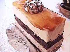 500円。 写真右下。 3層。 チョコレートのちょっと焦げた風味。 上のゼリー状のものが口溶けさらりで。 中の色の濃いところやその上なども味も違うし、食感も異なる。 中にはナッツなどもちょっと入っており、 こくも十分。