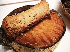 ギプフェル ヘーゼルナッツのウィーン代表的なお菓子だそうで。 やはりヘーゼルナッツの風味が印象的。 ちょっとサクサクと言うよりネトネトという食感。 コクとのバランスもよい。 ![]() クッキー(シェル) しっとりとした感じ。チーズだろうか? 濃厚さ、ナチュラルさ。 中になにかのジャムが入っていたようだが、あまり酸味はない。 2002.12 |