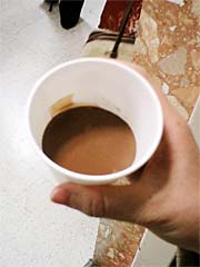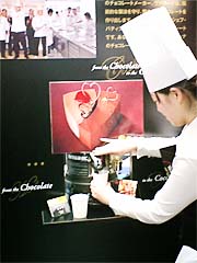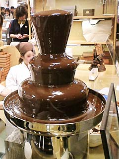 サロン・ド・ショコラとは言っても閉店した青山のお店ではない。 要はデパートの催しものである。 最初はこじんまりとしたモノを想像していたのだが、かなりの大規模。 まあ、あちこちのお店の出店の集まりといえば、単なる集まりですが。 国内外を問わずに。 まあ、時期的なものですが、最近のショコラへ感心の高さを 表すものではないでしょうか? 右の写真は、液状のチョコレートが流れ出ております。 その中で注意を引いたのがこちら。 ヴァローナの出展で、ホットチョコレートを紙コップで少量販売している。 なかなか美味しそうだ。