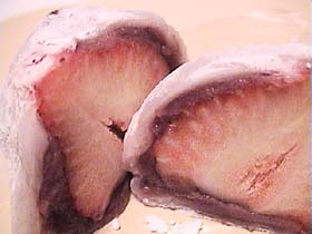 外のもちもちっとした食感の皮は好きな部類。 あんこは甘さ控えめに、苺を消さないように。 苺をメインとした別のものと思えばよいだろう。 甘さ控えめで、私的にはちょっと物足りないか? 嫁さんはなかなか、と評価。 1個180円。 えんどう豆も中に入り、ちょっとしたアクセントに。 お店の写真は、お休みの日。 普通の民家。 2003.2 |