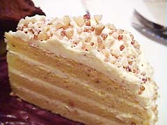 最近ドイツ系の菓子にはまってパート3。 シュトットガルト 280円。 ユーハイムのに似ているケーキだ。 口溶けは、ユーハイムに負けるが、バターの風味はこちらの方がよい。 私は結構好きかもしれない。 ナッツの食感と。 ただ、後味が油くさいというのはネックだ。