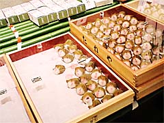 新宿小田急にて購入。 他のデパートでもあちこちで見られますが。 デパ地下の中でもでも割と高級な佇まい。 やっぱり、美味しいものでしょう? と期待は膨らむ。 上の写真は、草餅。 注文するとそのガラスケースを開けて取り出してくれる。 ケースを開けると、きな粉の香りがただよってきて、さらなる期待を。 ただし、店員は結構横柄な感じで、気分悪し。