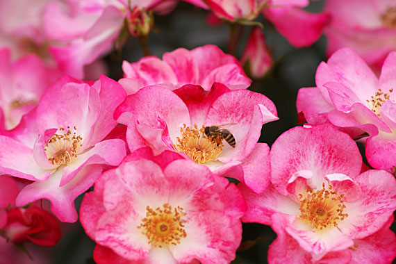 こういう花が開いた花には蜂が多く集まってきて、一生懸命蜜集めに精を出しています。