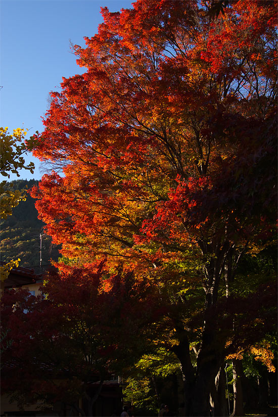 太陽はすっかり傾き、紅葉が更にオレンジ色に染まる様子はなかなか。