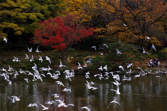 こちらは清澄庭園。 入場料を何がしか支払って。 来てみるとびっくり。 カモメや鴨や鳩なんかが。