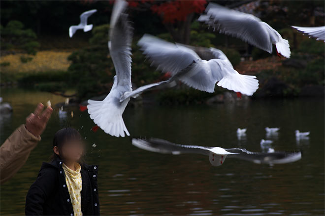 鯉にやる”フ”を売っているのですが、それをカモメに与えております。