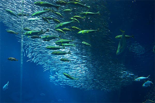 こちらは大水槽です。奥に見るのが、アジとかでしょうか?