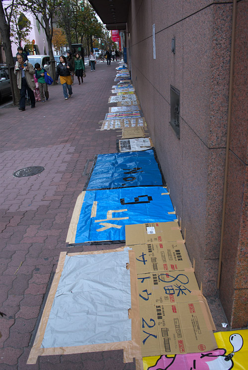 こちらはプランタンの脇。 福袋の待ち行列なんでしょうか? はがしたくなる欲求が・・・(笑)