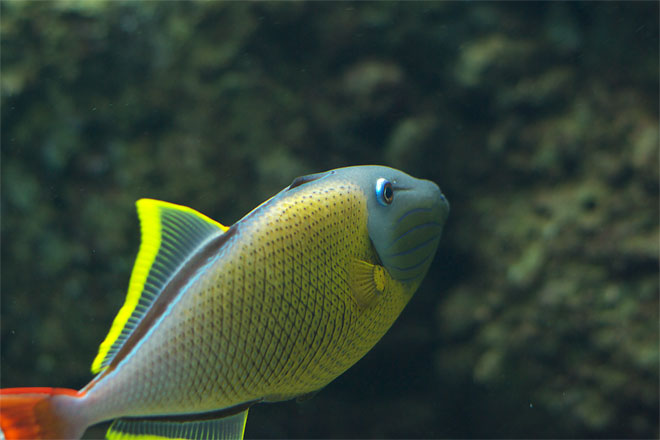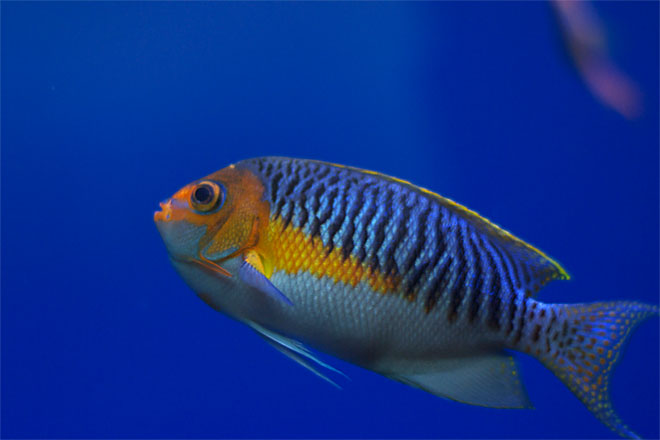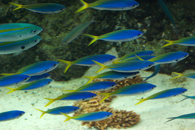 ウメイロだったかな、、こちらも明るい水槽なので比較的撮りやすく。 下にはナマコ。