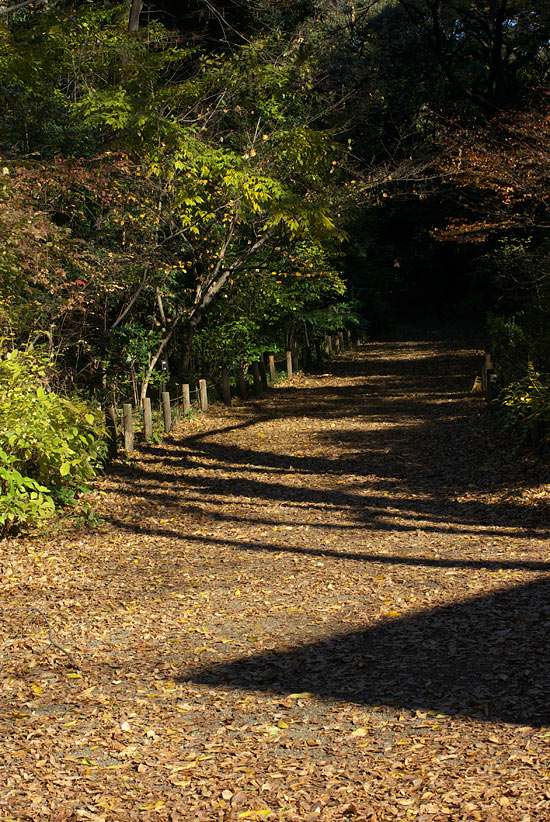 落ち葉で道を覆っております。 掃除もしないんでしょうね。 そのままに、、ということは?