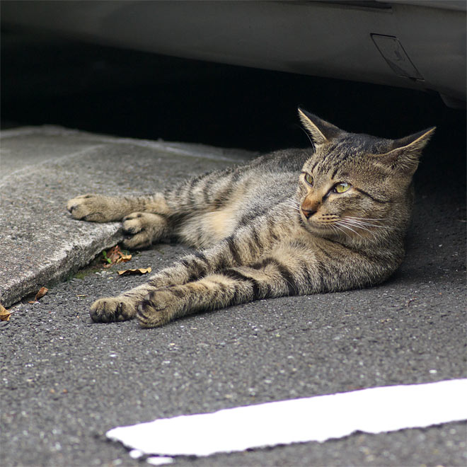 曇り空で雨は夕方から、という予報。 イメージではもっといるような感じですが、目的の猫は発見できず。