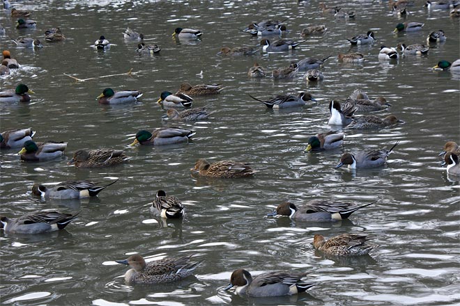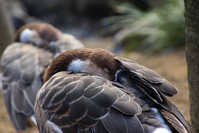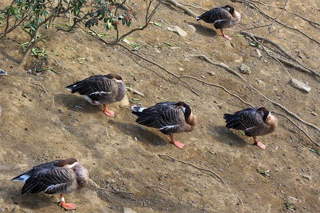 一番上の写真をちょっと上から。みな1本足で同じ姿勢、同じ向きで。