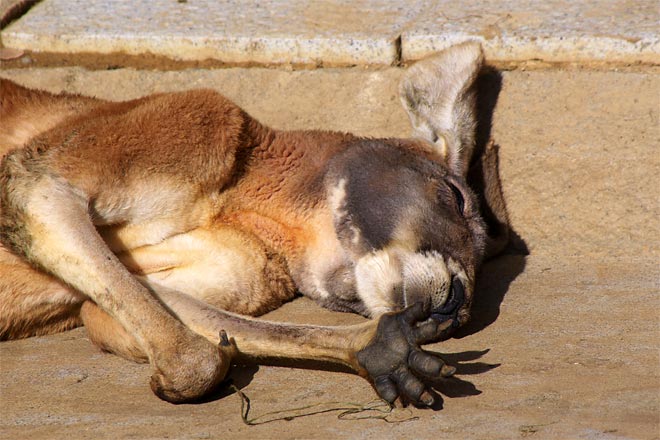 さて、こちらのカンガルーは、カンガルー用のケージのなかに、人間が入って檻ごしではなく、直接見ることが出来ます。
