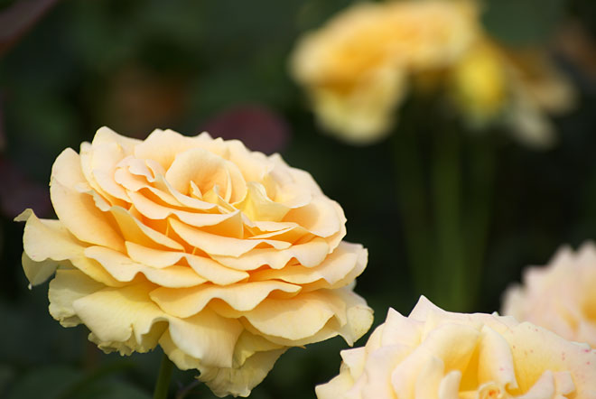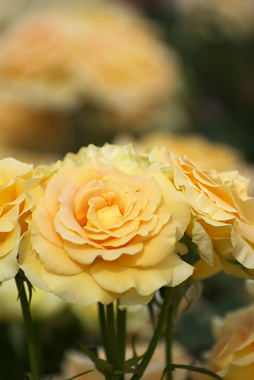 淡い杏色にほどよい大きさの花を咲かせます。