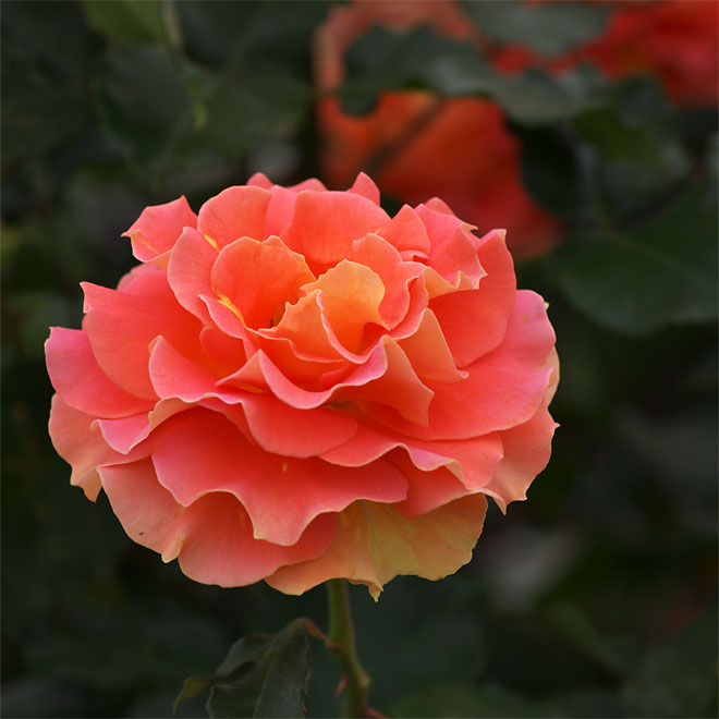 気温が低いころは暖かい橙色で、高温になるとすっきりとした杏色の花色に。