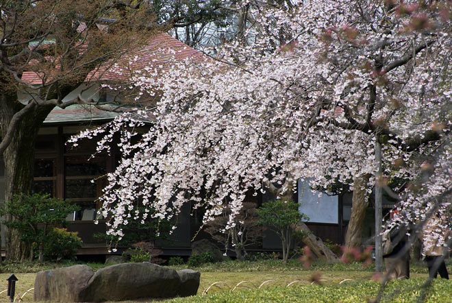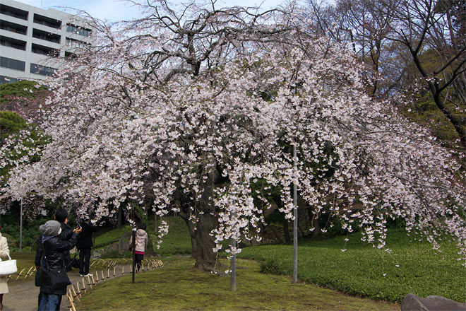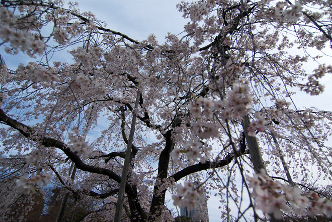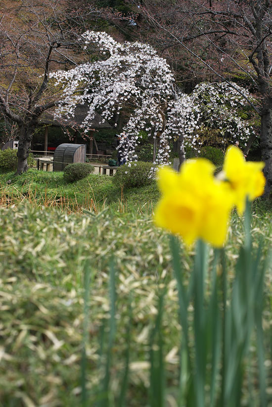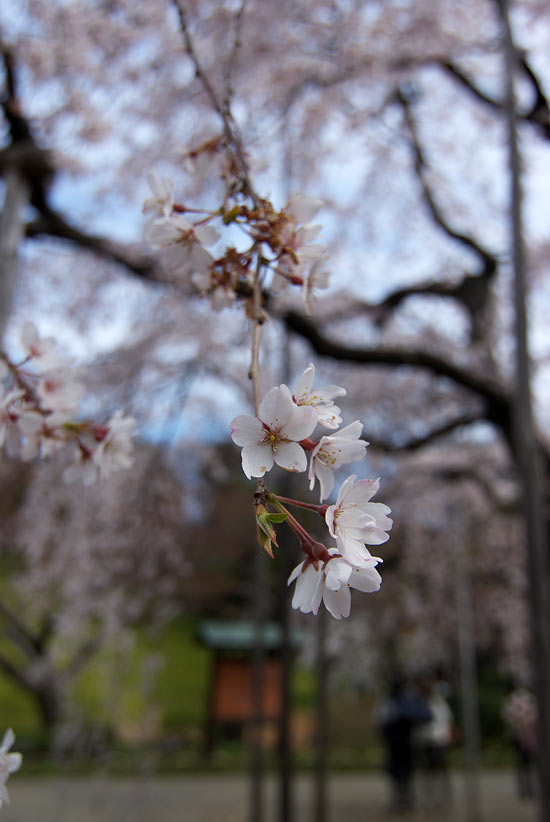 満開なのは、しだれ桜。 最初は広角系のレンズで撮っているのですが、なかなか難しいです。