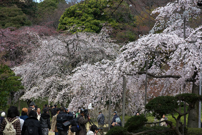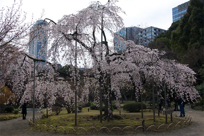 開花まもなく、一気に冬がもどったような陽気。 天気がよいというので、入園とほぼ同時に入るも・・・・
