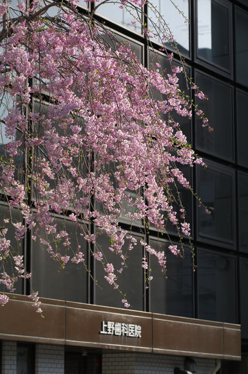 ちょっと引いてみると普通の医院前のしだれ桜が1本。