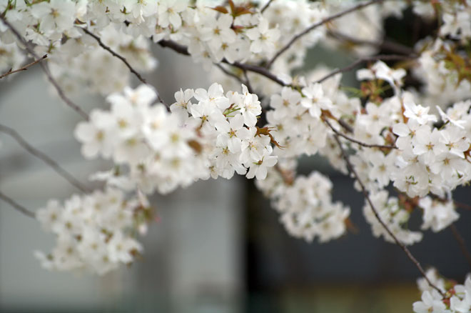 こちらは別の小学校前の桜。大島桜でいいのかな? このグリーンとの対比が好きで。