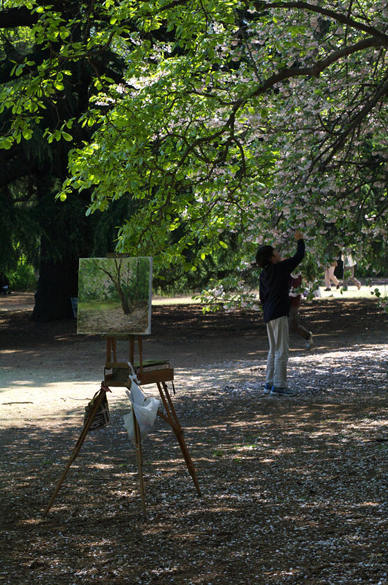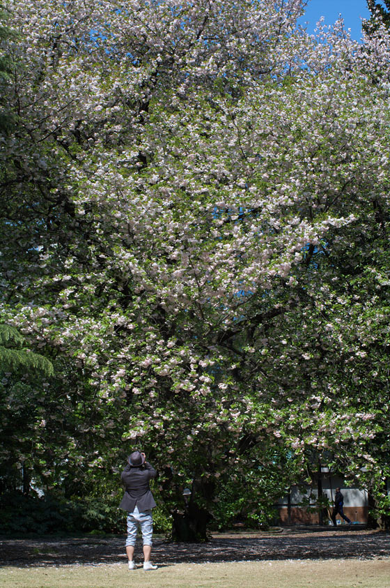 同じ桜を遠景で引いて撮って見るとこう感じです。 ショート丈のパンツのあんちゃんを入れて。