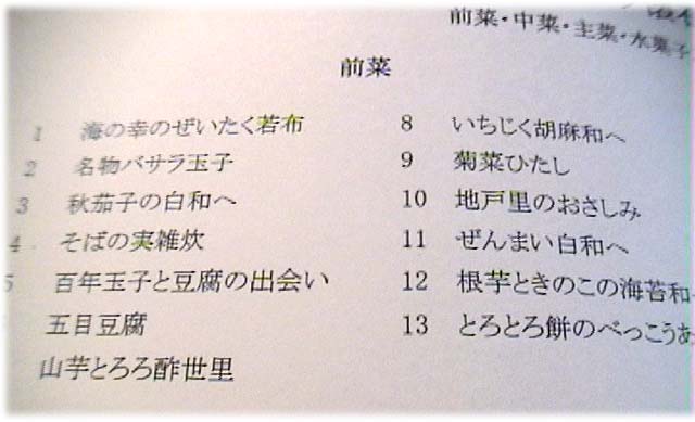 なぜか、野菜ものを主菜に。 おいおい、結局私のセレクトは肉も魚も
