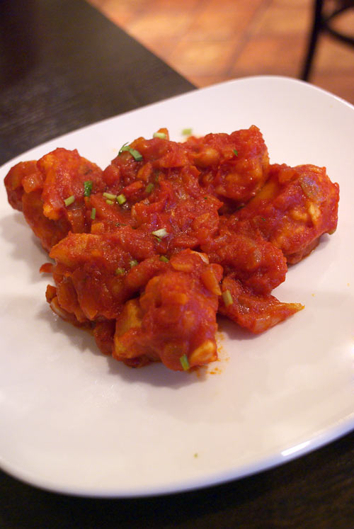 ケチャップみたいなトマトソースがまわりにからんでおり、酸味と甘みがしっかりと。