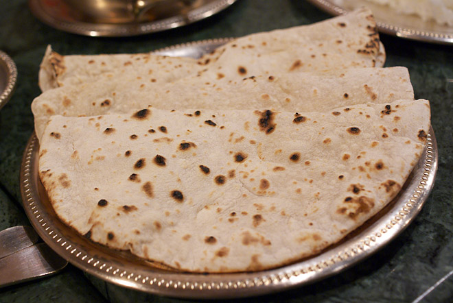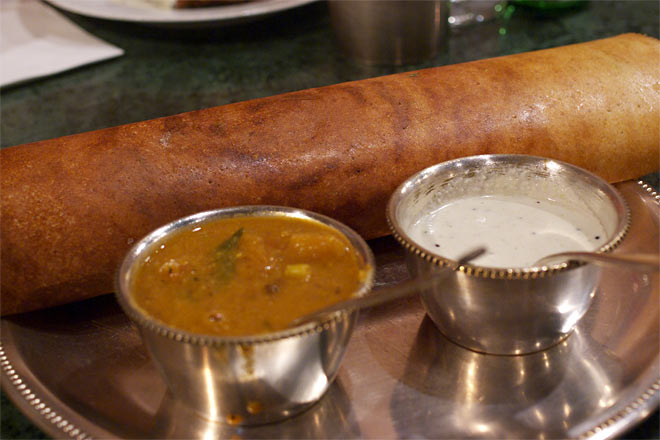 中はもちっと、周りはぱりっと。チャツネをたっぷりつけて・・・・