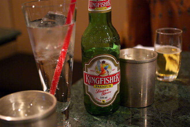 奥はインドビール。 手前はスパークリングウォーター、その手前はお冷(笑)