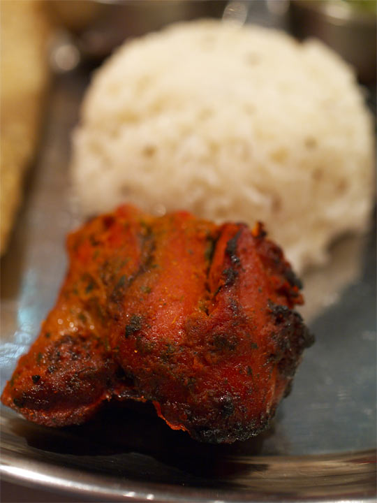 まずタンドーリチキン。 うーん、意外にいける。 肉もしっとりとしていて。