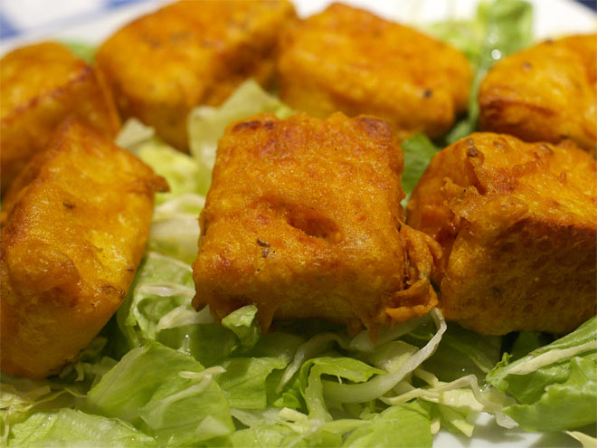自家製カッテージチーズのフリット。この手のインド系料理では定番ではありますが、人数もいるので、一人1個でもいいかな、、と。