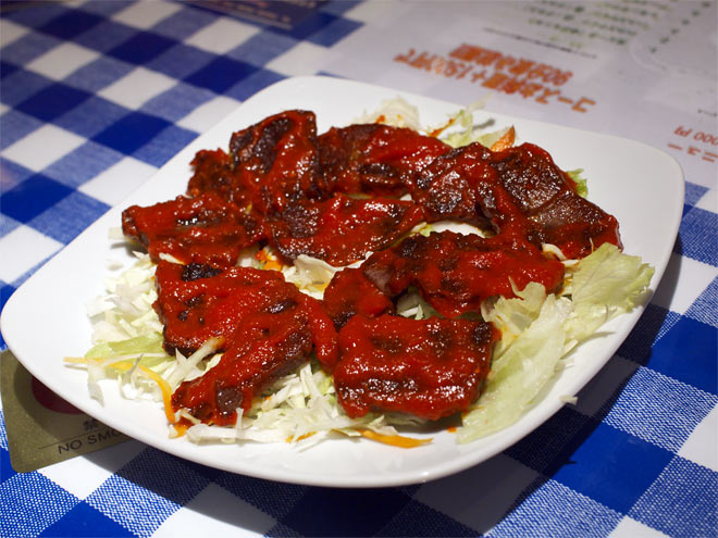 950円。 香ばしく焼いたマトンは噛み応えがあり、レタス、キャベツの上にマトンが薄切りで。