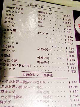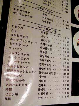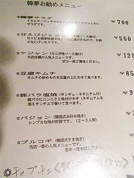 韓国家庭料理 韓夢 マダム・ミンの店 メニュー