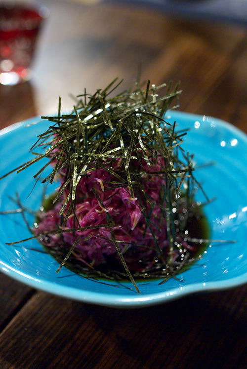 秋の味覚だそうです。 紫の食用菊のおひたし。 でも酸味はあったような、、