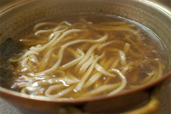 薄い方は、別のたれを鍋に入れてうどんを茹でていただきますが、ちょっとだけいれて。