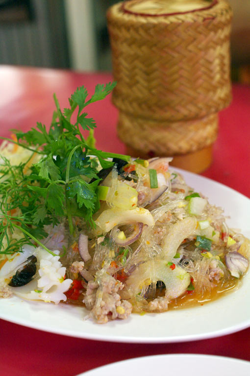 魚介の春雨サラダ。 全メニューを同時に食べているわけではないので、確かなことは分かりませんが、このお店で一番辛いかな?と思っている一皿。