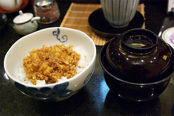 こちらはコースの〆に。 天茶のほかに、天丼が選べます。 どんなものかと思って1種ずつ。