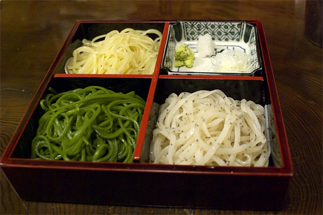 いずれも、ややしょう油の効いたつゆで、食べると香りが引き立ち、なかなかの味わい。