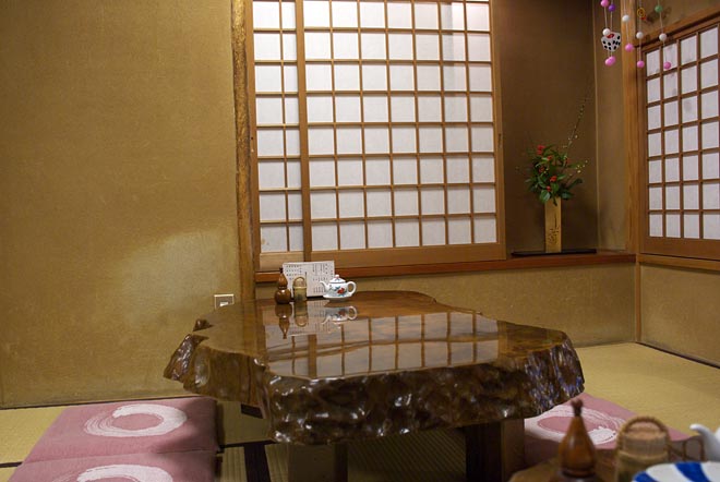 座敷はこんな感じで、うまく座れれば、ついゆったりとしてしまいます。
