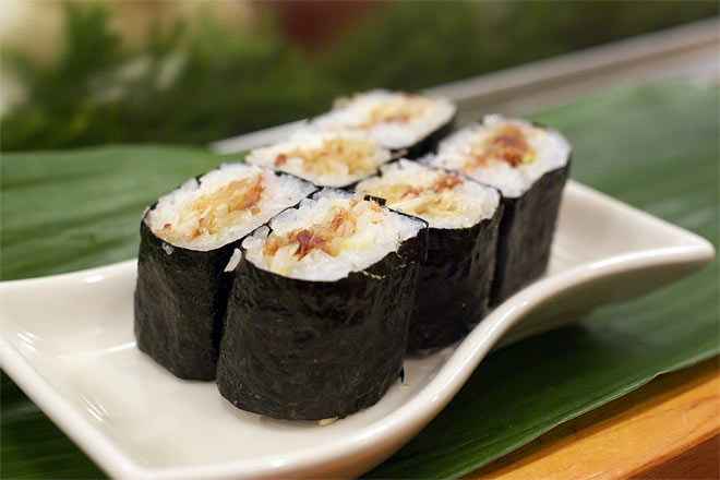 みょうがとかつお節が詰まった巻物。 さっぱりとしており、口直しに。 もっと食べたいけど、我慢我慢。