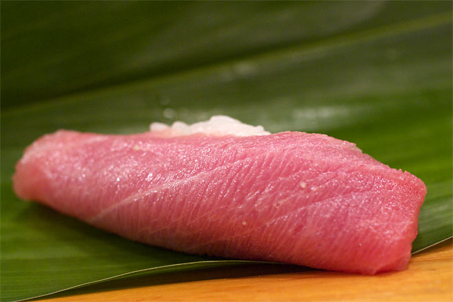 中とろ。 残念ながら、今回は今ひとつ。 普段はいいマグロ握ってくれるそうなので、リベンジに期待。