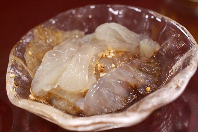 こちらのタレに付けていただきますが、酢のきき具合といい、その食感といい、非常に美味しくいただけます。
