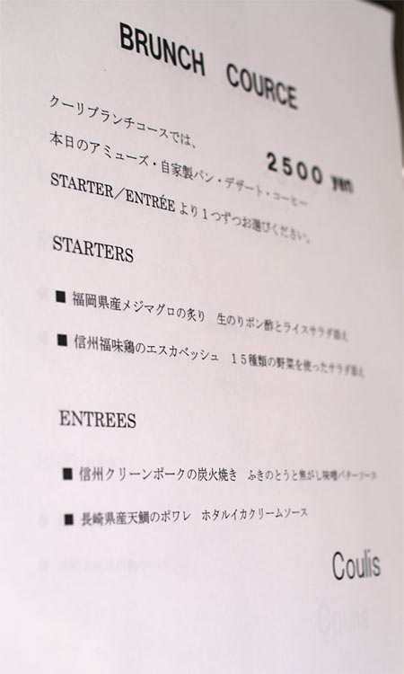 これが2500円の土日祝のブランチコース。 もうひとつ、本日のお任せが3500円あり、私たちは後者に。